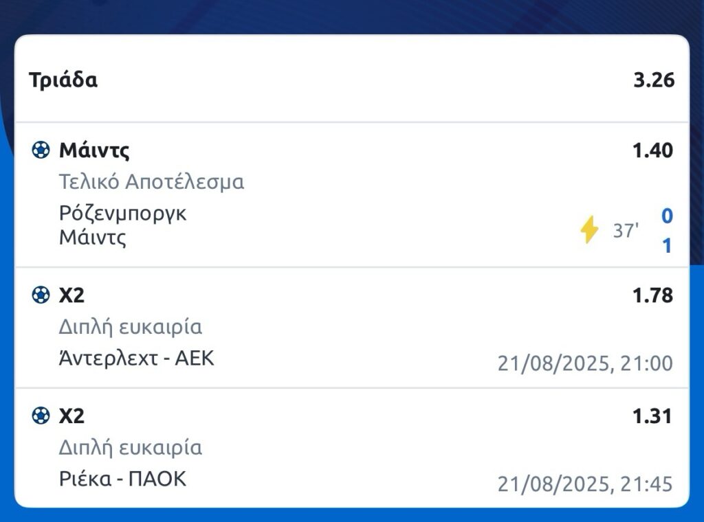 Αποποίηση ευθύνης: Το περιεχόμενο είναι ενημερωτικό. Δεν αποτελούν στοιχηματικές συμβουλές.